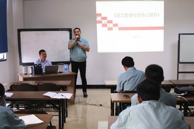 为进一步提升管理人员综合素质和管理能力,加强管理人才队伍建设,促进公司持续、健康、稳步发展,8月14日公司组织开展了2017年度管理人员专题培训,并特邀中国十强生产管理领域管理培训咨询师、创维商学院合约讲师、知名培训咨询机构讲师杨华老师前来公司授课。 本次培训共有35名管理干部参加。培训开始前,副总经理吉永光宏对参加培训的管理干部表达了殷切期望:“本年度的干部集中培训,培训前征集了大家的意见,主题为“员工管理与责任心提升”。旨在帮助大家学习更合理的管理方式,解决日常管理中遇到的难题。希望大家能认真学习,并吸收反思,在今后的各自管理中学以致用。 为促进各部门员工之间的交流及培养团队作战能力,杨老师首先将参训人员分成4个小组,由每个组选择自己的组长并展示自己的口号。接下来杨老师以“员工管理与责任心提升”为主题,围绕员工管理与员工关系、员工责任心与员工沟通、如何留人育人三方面内容进行讲解,培训课程打破了传统理论说教模式,采用了案例说明、做题自测、课堂动作体验等多种方式,向在座员工讲授了高效团队建设、有效沟通等方法方式,使参训人员耳目一新、受益匪浅。 培训过程中,杨老师安排了多个互动小游戏,通过游戏来考验和实践大家对培训知识的理解。通过激烈角逐,以刘柏林为组长,卢文俊、舒华印、刘君、黄文、徐长金、邓丽丹、许春炎、涂传亮、范贵增为组员的第一小组荣获本次培训的“优胜组”。 培训的最后环节,常务副总经理范贵增代表公司对此次培训做总结。范总首先组织大家以热烈的掌声对杨华老师表示了感谢,接着说道:“我是第二次参加杨华老师的授课,每次上课都受益颇多。在培训过程中,我注意到大家在选组长的时候,不是那么积极主动,我想和大家分享一点我的成长经历。我小时候很想当“孩子王”,带领周围的小孩子一起玩,但是因为我个子小,一直都没有得到这样的机会。后来,通过每次机会去展示自我,终于在班上担任了团支书,在课外当起了“孩子王”。我希望每位员工无论在工作还是生活上,把握好每一次机会,来锻炼分析和解决问题的能力,去充分展现自我的才华,做一个真正的爱用心、会管理、乐分享的MCC人,时刻准备着组织的挑选”。