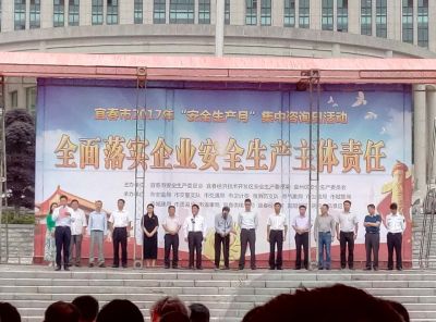6月16日8:30,宜春“安全生产月宣传活动”在开发区广场举行。参加活动的有,市委市政府、开发区、各行政部门、各工商企业领导和代表共500余人。宜春市政府副市长张家良宣布启动仪式,宜春市安监局局长鄢礼俊主持仪式。武藏野、莱茵电梯企业代表在主席台作了报告。 仪式后,开展了安全知识竞答,武藏野公司安全员揭飞林获奖。