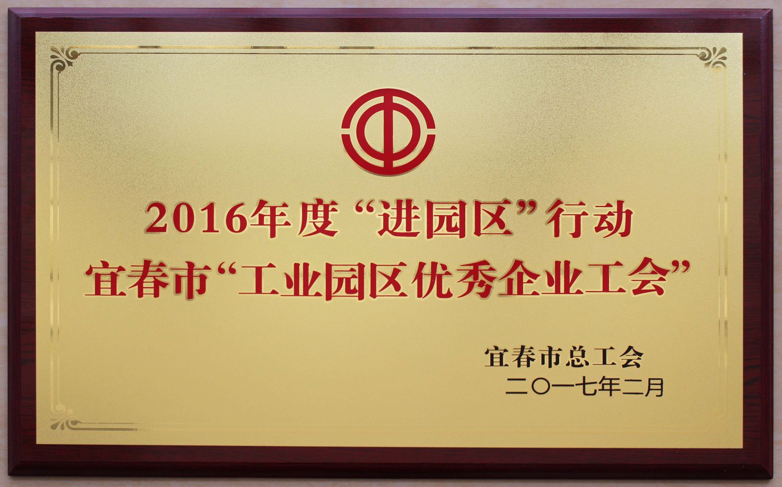 我工会被评为 2016年度“进园区”行动“优秀企业工会”。国家宜春经济技术开发区内,共有两家企业工会获此殊荣。