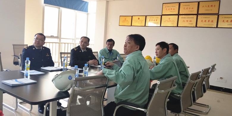 平松总经理向肖关长一行介绍了公司的发展历程、生产产品及产品用途等,重点介绍了出口销售情况。