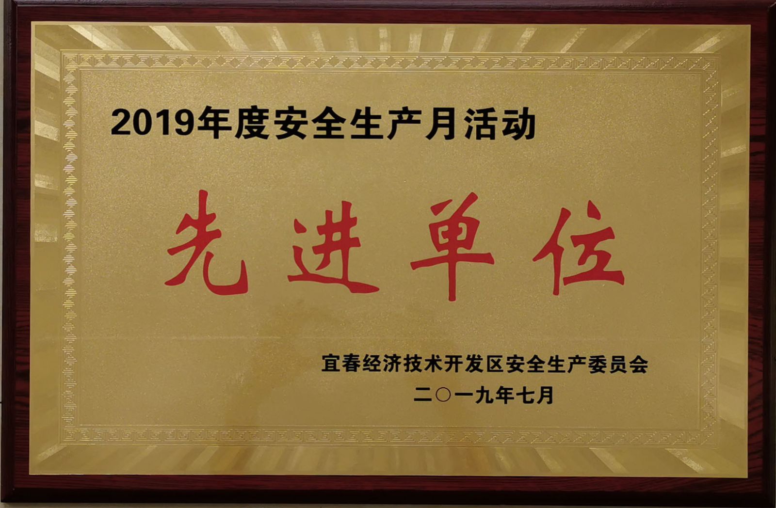海角社区在线 有限公司荣获宜春经济技术开发区“2019年度安全生产月活动先进单位”称号。